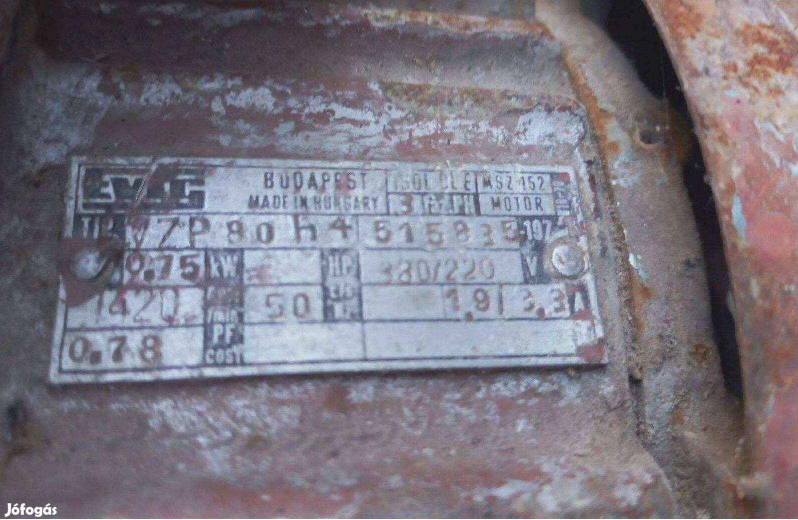 Eladó 220/075 w os villanymotor működik de nagyobb kondi kellene hozzá személyes átvétellel