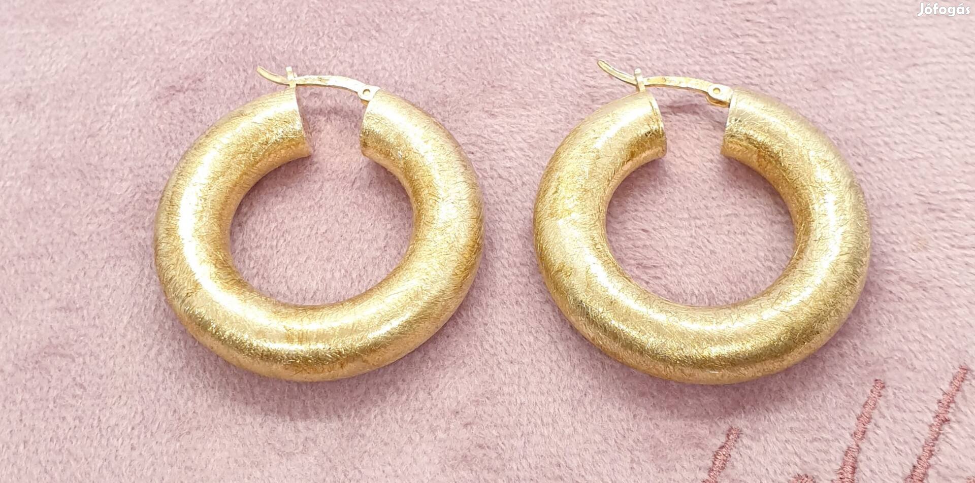 Eladó jelzett ezüst 925 arany színű nagyon vastag karika fülbevaló,nem hétköznapi darab.Szep állapotba van párszor viselt. Merete 3,5cm es 19,5gramm.Személyesen Székesfehérváron megtekinthető illetve előre utalás után tudom csomagként feladni.
