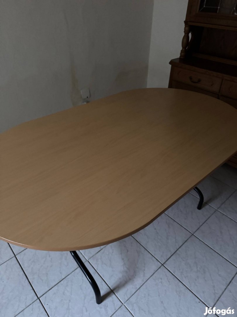 Ovális alakú, fém lábakkal. 100 x 170 cm