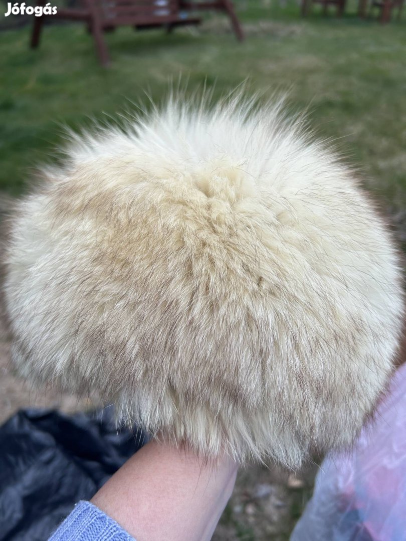 Fehér róka sapka használt, viseletes.