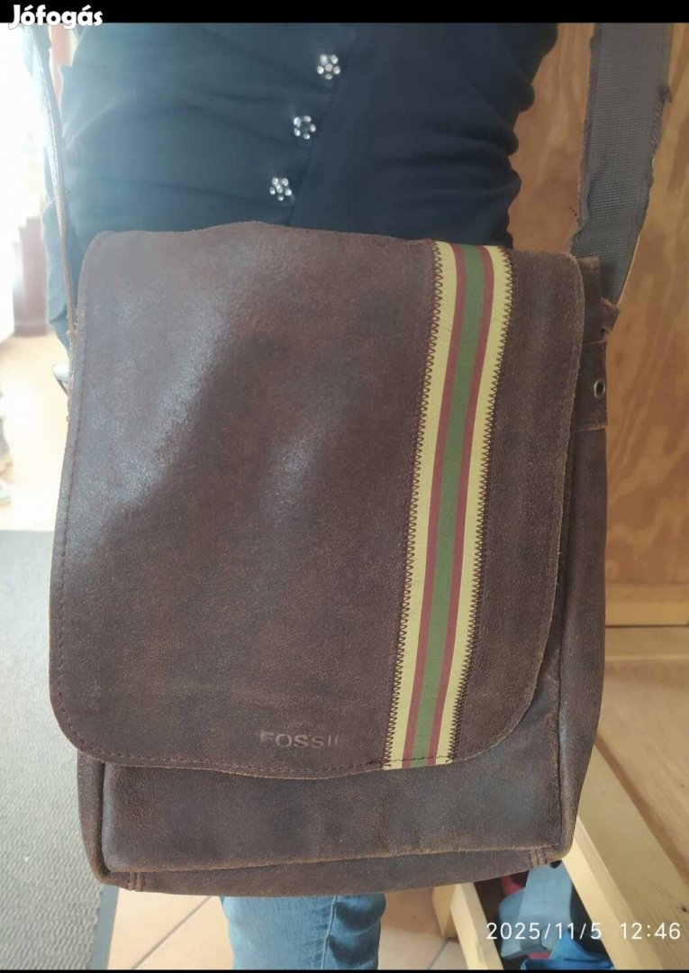Eladó egy hasított bőr belül több zsebes Fossil táska.