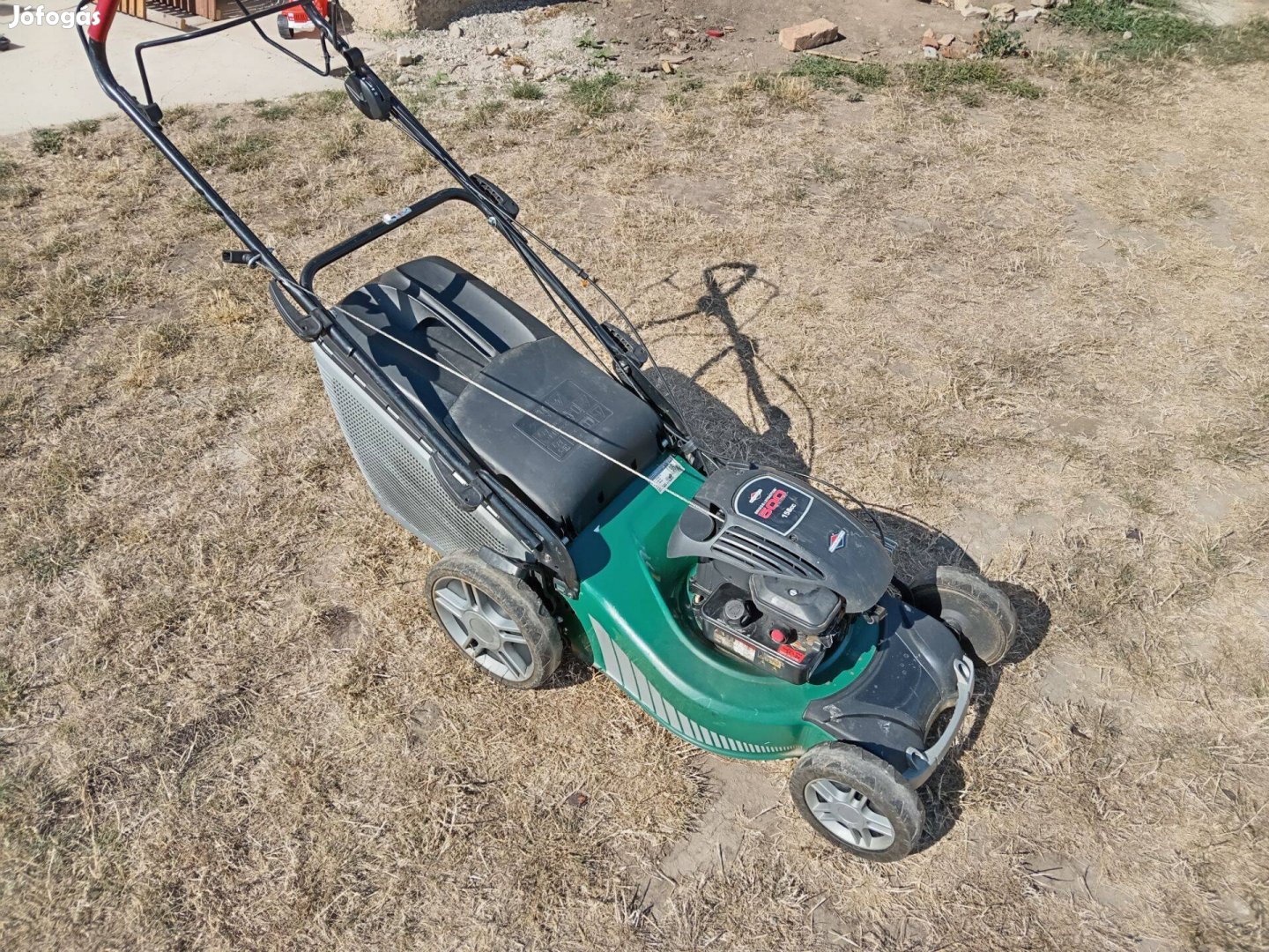Eladó a képeken látható gyárilag 4 lóerős Briggs & Stratton motorral szerelt fűnyíró! 46cm vágószélességű, központi vágómagasság állítású, duplán csapágyazott kerekekkel! Megkímélt szép állapotban. Leszervizelve!