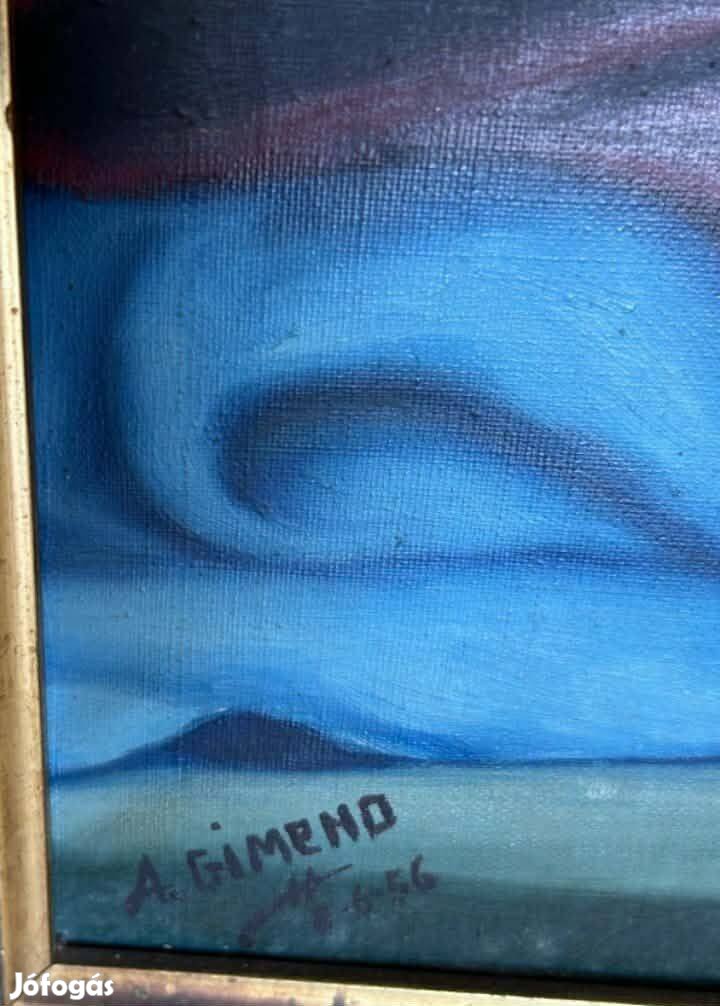 Eladásra kínálom Gimeno (XX. századi festő) Bodegón con jarrón de Sévres y claveles című festményét.