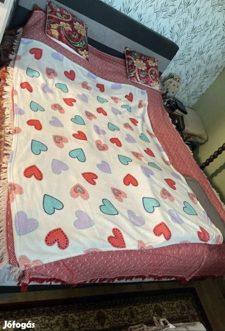 Eladó egy gyönyörű állapotban lévő, alig használt gyermek pléd. Anyaga puha plüss. Szívecskés minták díszítik.