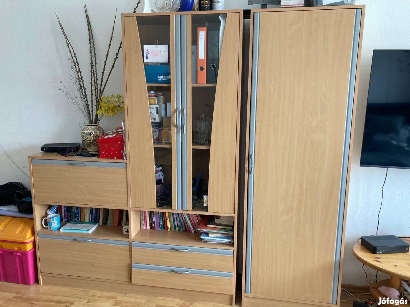 Eladó jó állapotú kisebb hálószoba bútor, akár irodába is megfelelő. Mérete szélesség:200*magasság:184 cm A fogantyúk javításra szorulnak. Szétszedésben és szállításban nem tudok sajnos segíteni