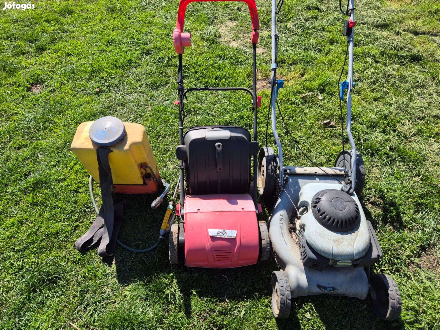 Eladó permetező, gyepszellőztető, és fűnyíró. A permetező 5 éve még ment, a gyepszellőztető működik, a fűnyíró hiányos sok minden nincs rajta üzemképtelen. Minden úgy van ahogy a képen látható, más nincs hozzá! Csak egyben eladó aki lát benne fantáziát.