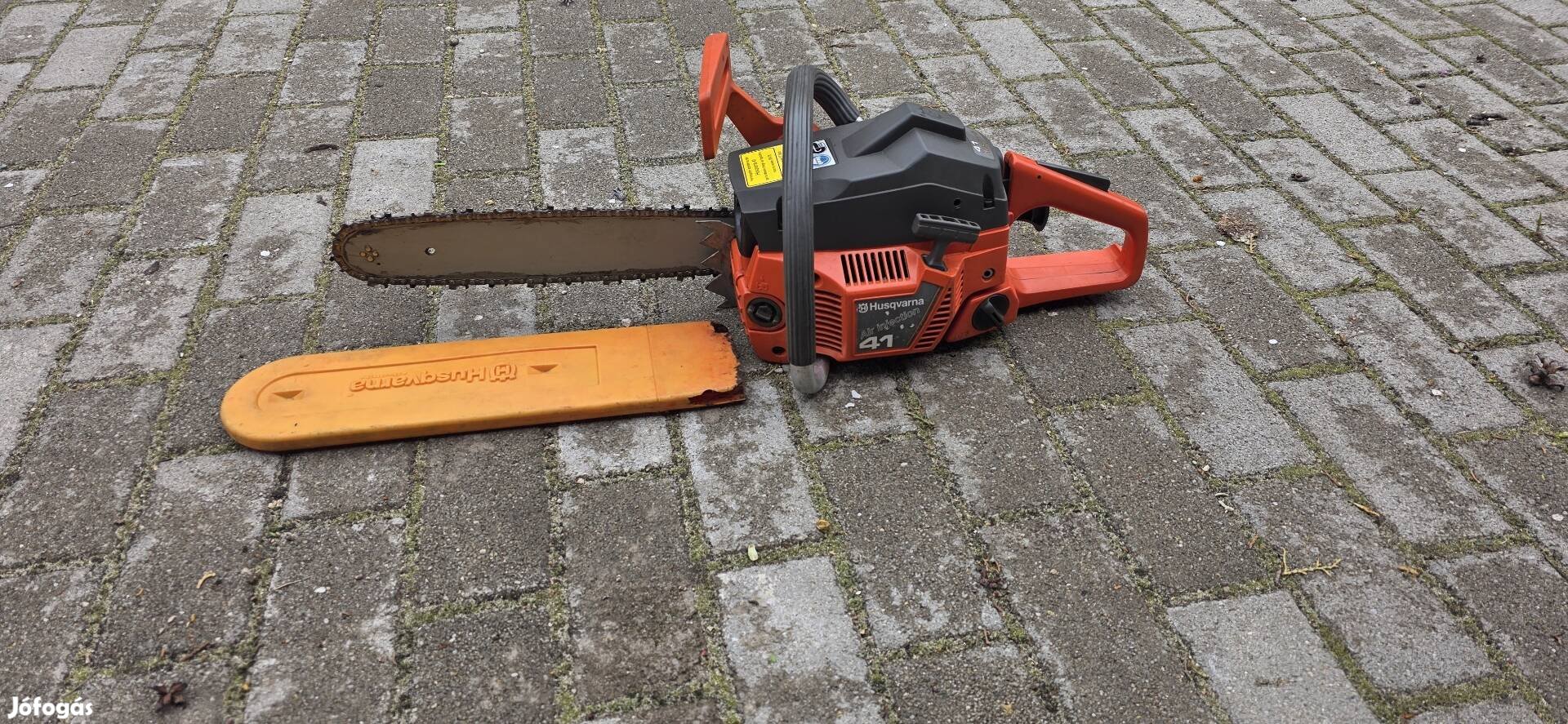 Képek szerinti külső,gyári motoros.Vágószerkezet közepes állapotban.Könnyen indul,szép pattogós alapjárat,azonnal munkába fogható.