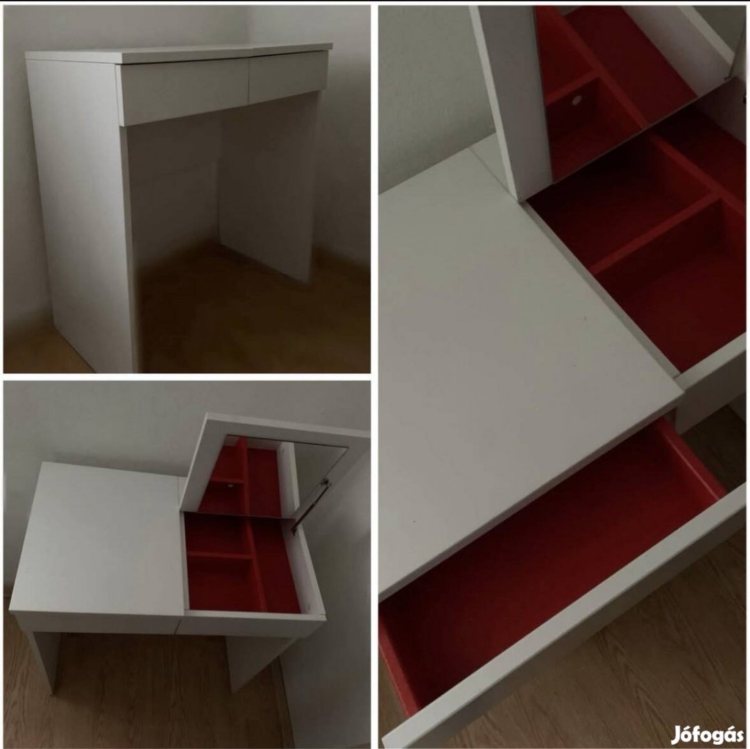 Eladó szép állapotú, fehér színű IKEA Brimnes fésülködőasztal, piros belső tárolóval.