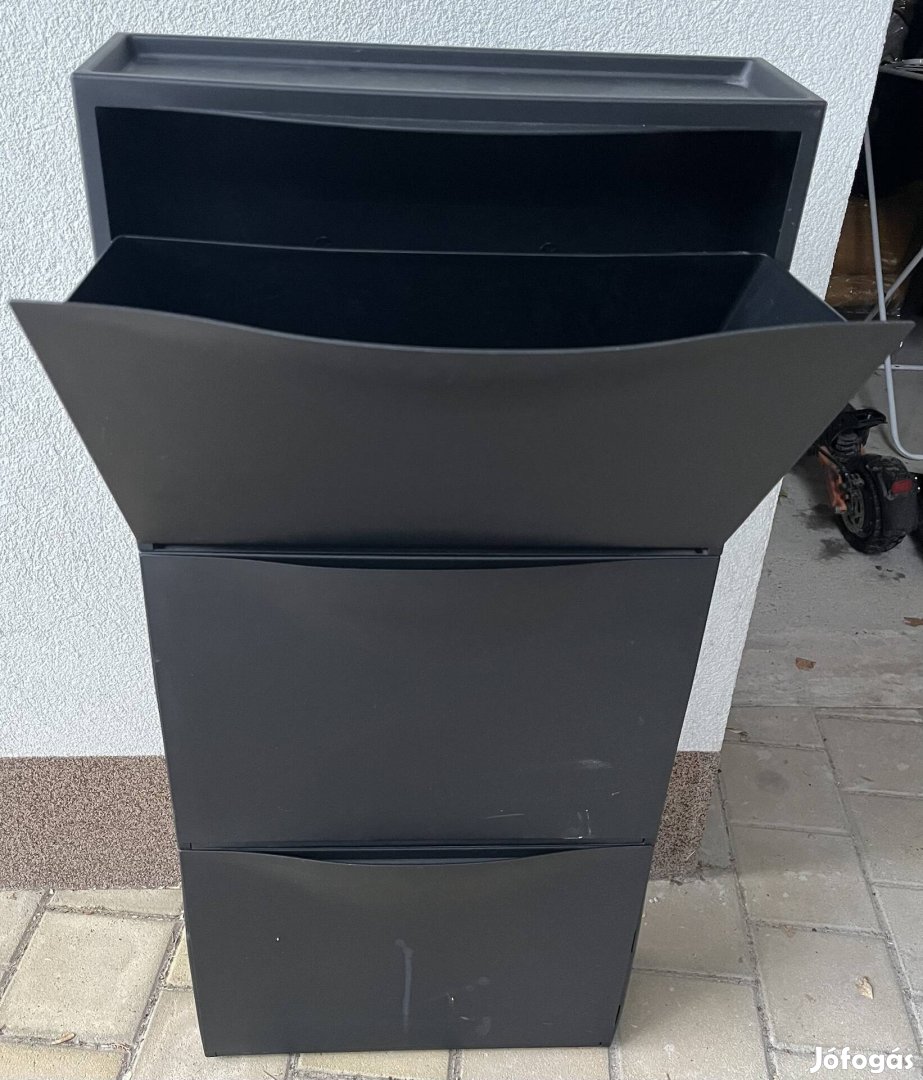 Nagyon jó állapotú, elemekre bontható cipős szekrény eladó költözés miatt. Egy polcba 3 pár cipő fér el!