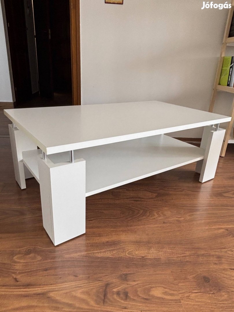 Eladó a képeken látható, használt KIKA (mai nevén xxxlutz) fehér dohányzóasztal. A használatból eredő sérülés a képen látható.