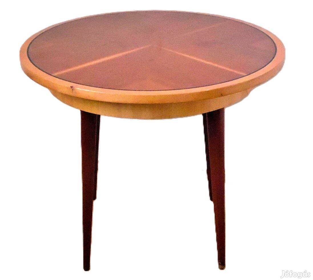 Kerek intarziás kisasztal 50 cm-es magasságú, 60 cm-es átmérőjű egyedi