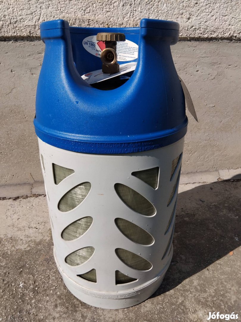 A képeken látható kompozit (üvegszálas polimer) pb gázpalack tele állapotban, nyomáscsökkentővel eladó.Üresen 5.4 kg ,(50% könnyebb és biztonságosabb mintha acélból lenne) jelenleg feltöltve 15 kg. Alkalmazható: grillekhez, lakókocsiban.