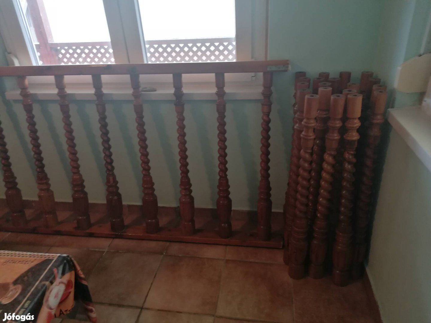 Eladó 29 db korlátoszlop. Méretei: alja 12cm, teteje 7,5 cm, a rúd hossza 95 cm. Érdeklődni a megadott telefonszámon lehet.