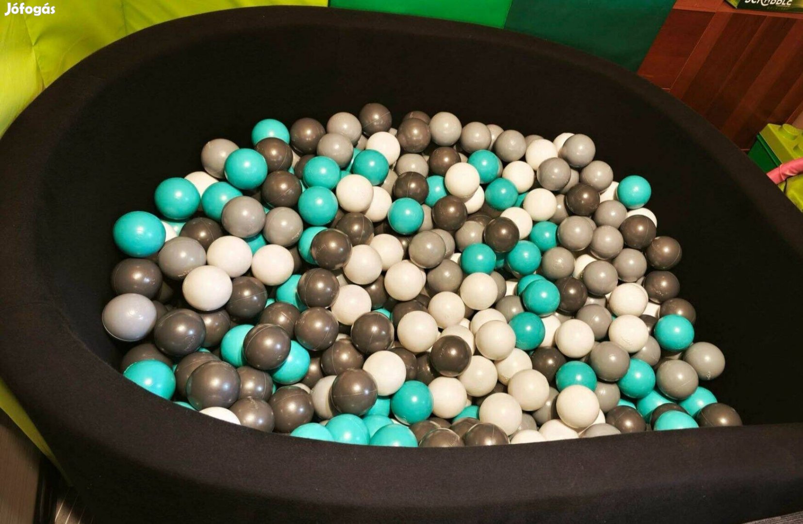 Eladó Nagyméretű Labdamedence 110 cm átmérő, 50 cm magas, fekete, 4 féle labdával, fehér, kékes-zöld, vilagos szürke, sötét szürke, 540 db labda