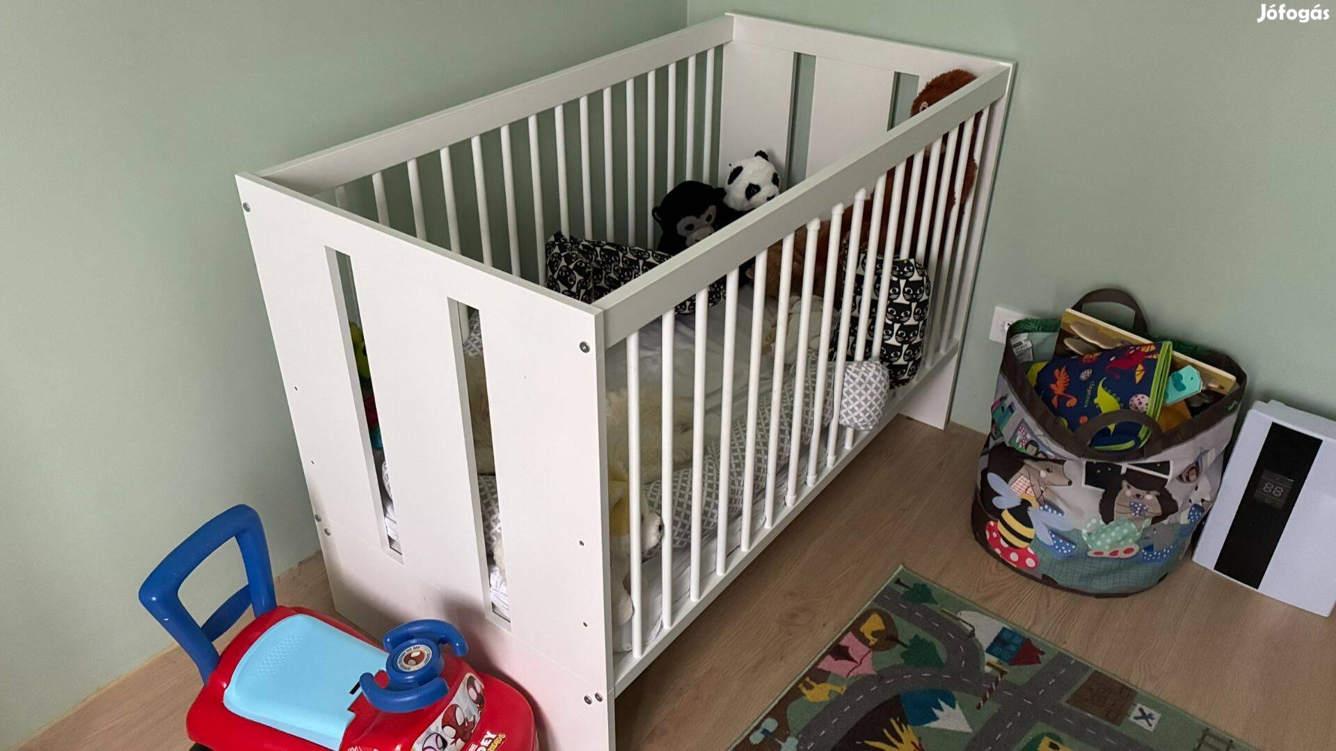 eladó a képen látható, újszerű állapotú babaágy, matraccal. méretek: 70*140. állítható magaságú, 3 kivehető védőrúddal.
