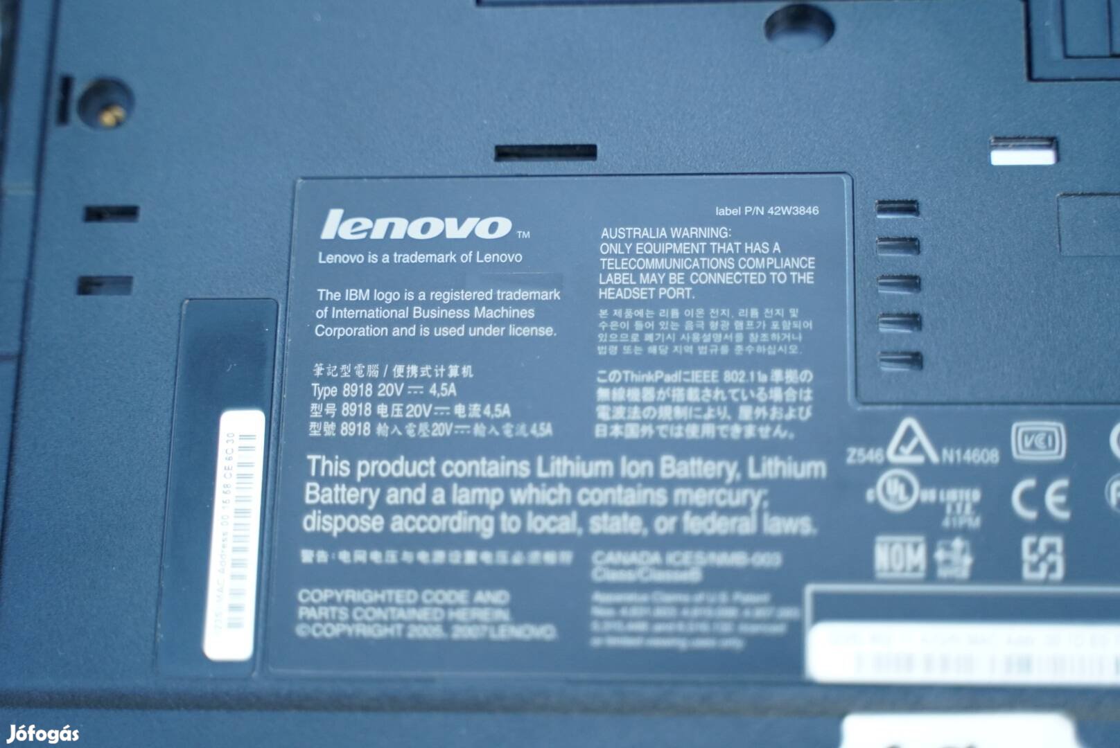 Eladó egy jelenleg nem működő Lenovo R61 laptop.