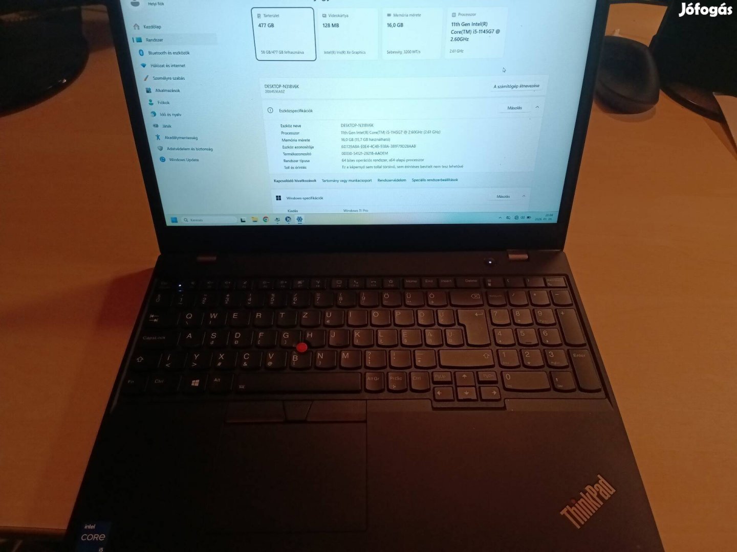 Eladó újszerű Lenovo Thinkpad L15 Gen2-es laptop 16GB RAM-mal és 480GB SSD-vel.
