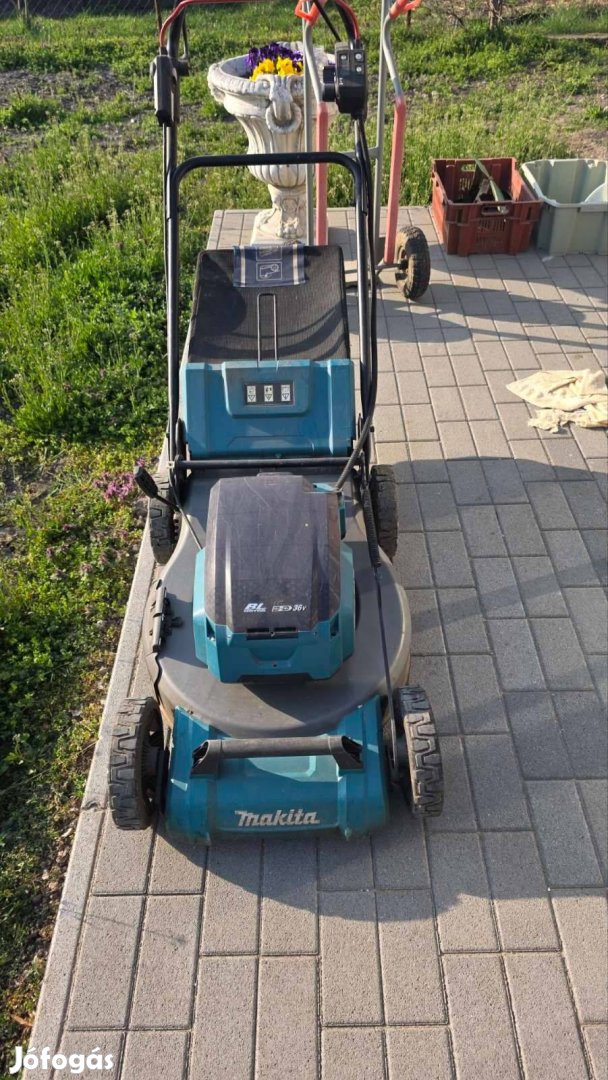 Eladásra kínálom nagyteljesítményű, Makita DLM536Z típusú, 36V-os (2x18V) akkumulátoros önjáró fűnyírómat, ( a 4 akkumulátoros energiacsomag töltővel, koferral opcionálisan külön megvásárolható hozzá, vagy akár külön is, annak az ára 150.000 Ft.)
