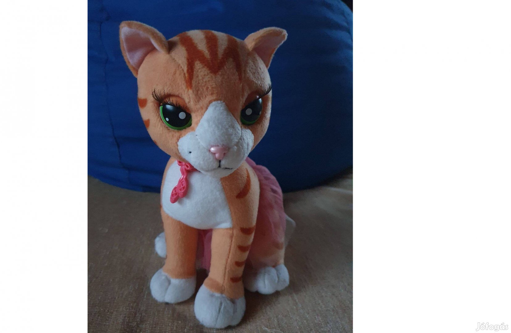 Ha a fejét mozgatjuk fel-le, akkor nyávog, sóhajt és lecsukja a szemét, de van, amikor lallázik, nyávog, bürrög. Elemmel működik.
