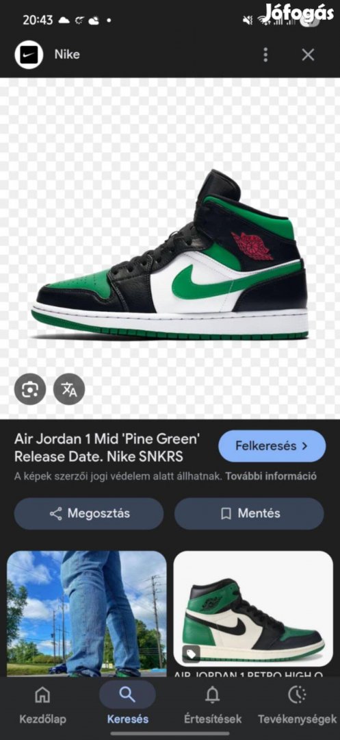 Nike air Jordan 1 mid pine green cipő eladó akciós áron! Igényes tulajtól tényleg alig használt baráti áron! 44 es méret! Köszönöm