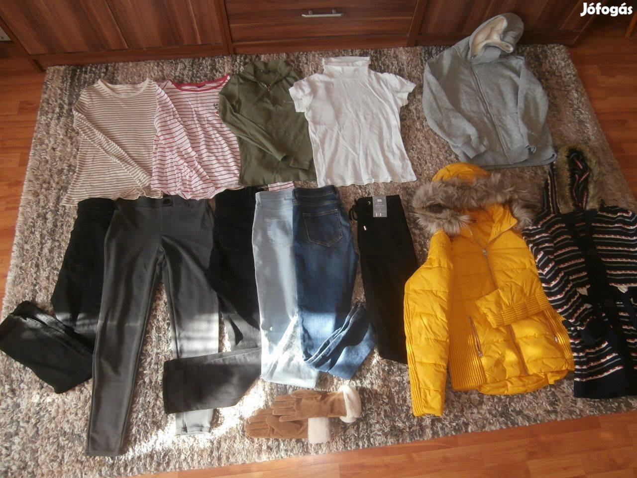 Eladó szép állapotú használt ruhacsomag a képeken látható darabokkal, van benne néhány márkás és sosem használt darab ( S-M cipő 36-os )