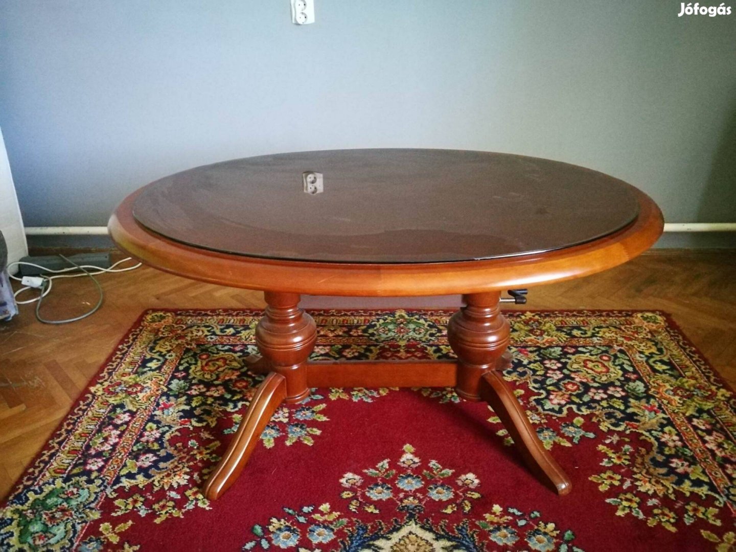 Eladó szép állapotú dohányzóasztal. Állítható magasságú, az üveglap a tetején nem ragasztott, így bármikor levehető roncsolásmentesen.
