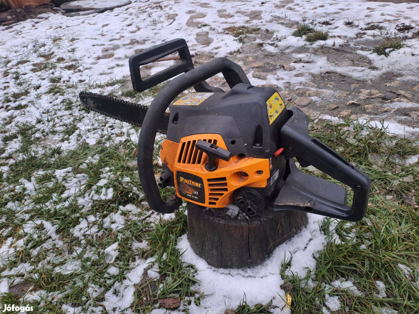 Képek szerinti fellelt állapot, jó kompresszió, beöntésre indul, de utána leáll. Jó láncfék, jó csillagkerék. Tisztítást, javítást igényel.