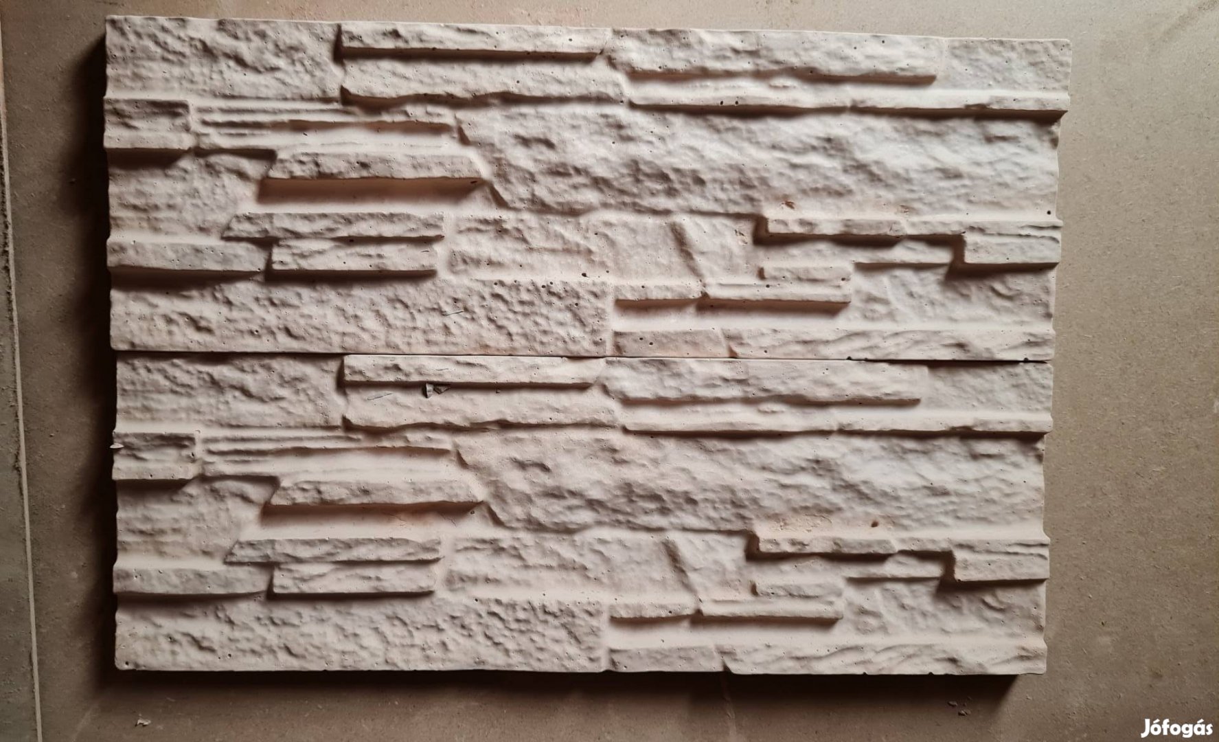 Pattintott kő hatású kül és beltéri falburkolat bézs színben. Anyaga műkő kemény időtálló.