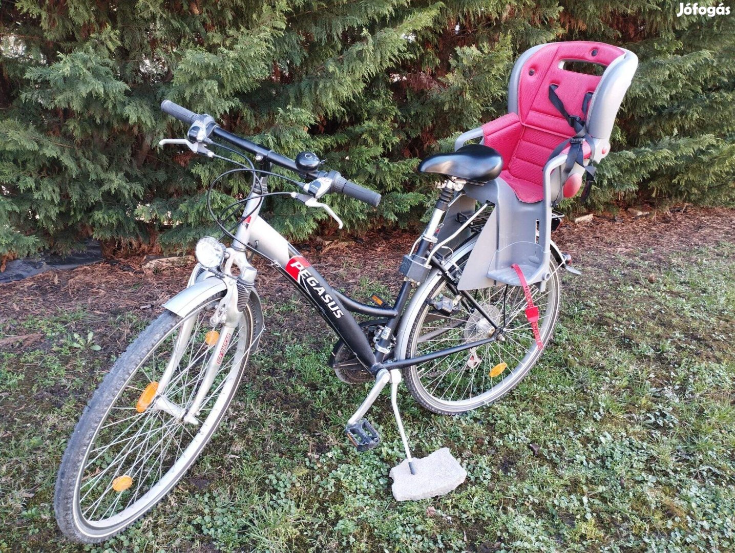 Könnyű alumínium váz, tökéletes szinte új állapot, újszerű gumik elől-hátul, 21 sebességes Shimano váltó, teleszkópos az üléscső és az első villa, állítható kormány. Dinamós első-hátsó lámpák, hátsó csomagtartó, sárhányók, oldaltámasz és csengő.