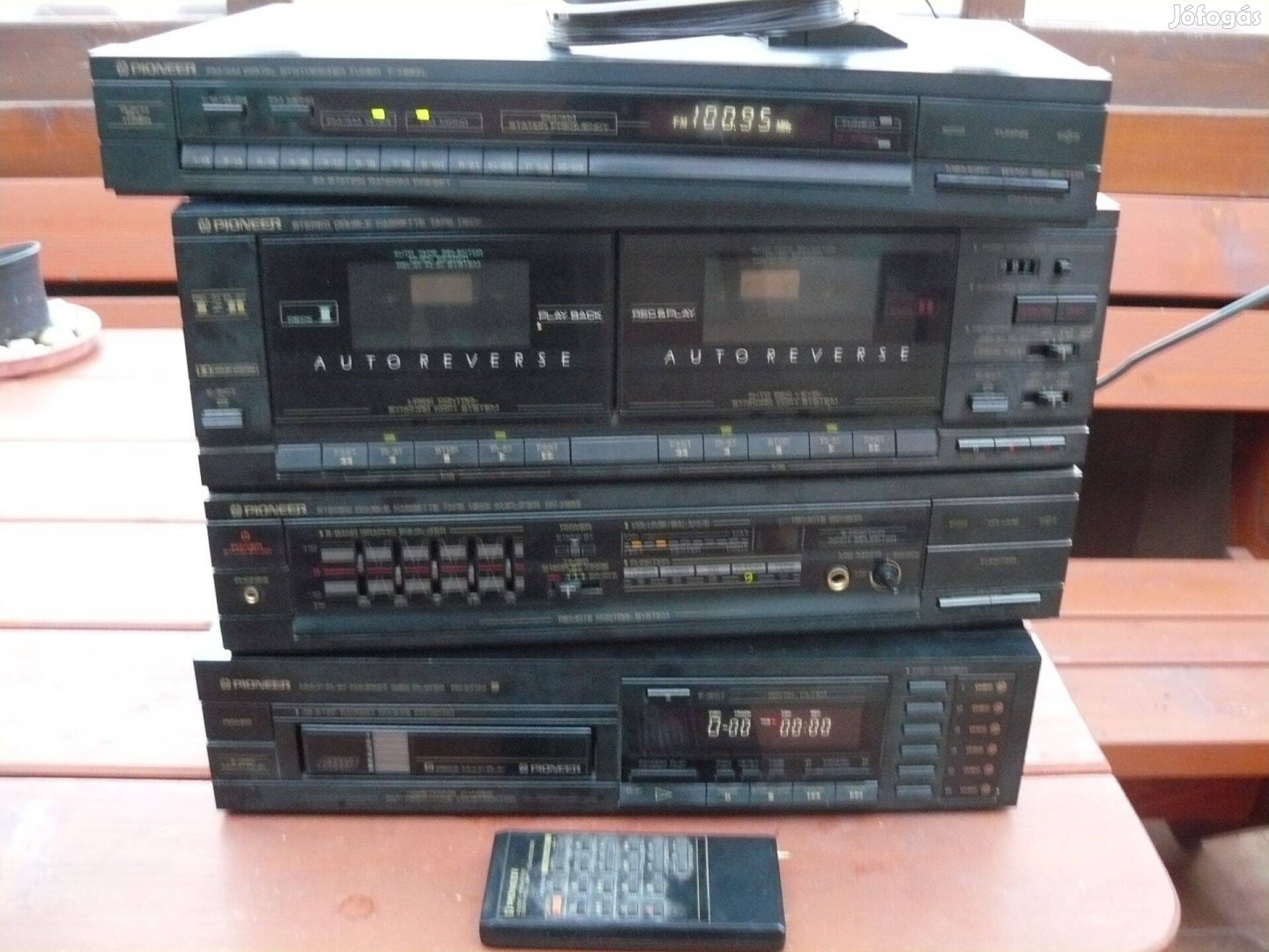 Pioneer hifi torony távirányítójával. Alkatrésznek,vagy javításra kínálom.Erősítő,rádió , működik,a magnó csak kattog,a 6-os CD váltó ,veszi a lemezeket sorba,de nem játsza le.