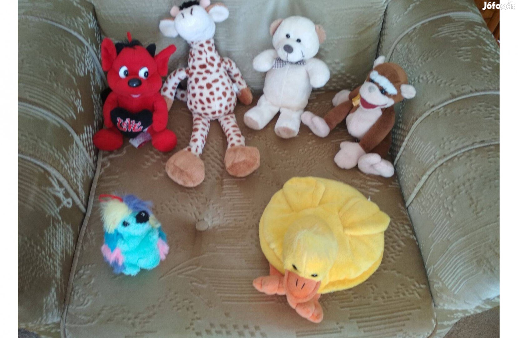 6 db plüss állat eladó, , vitrinben voltak