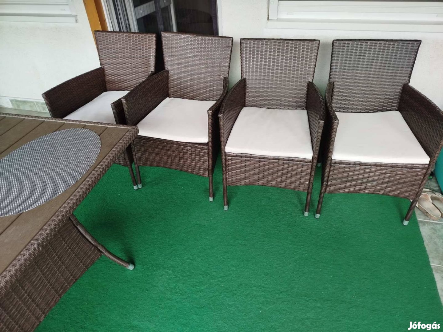 1 nyári szezont használt barna polyrattan szék garnitúra 4 db gyönyörű állapotban.