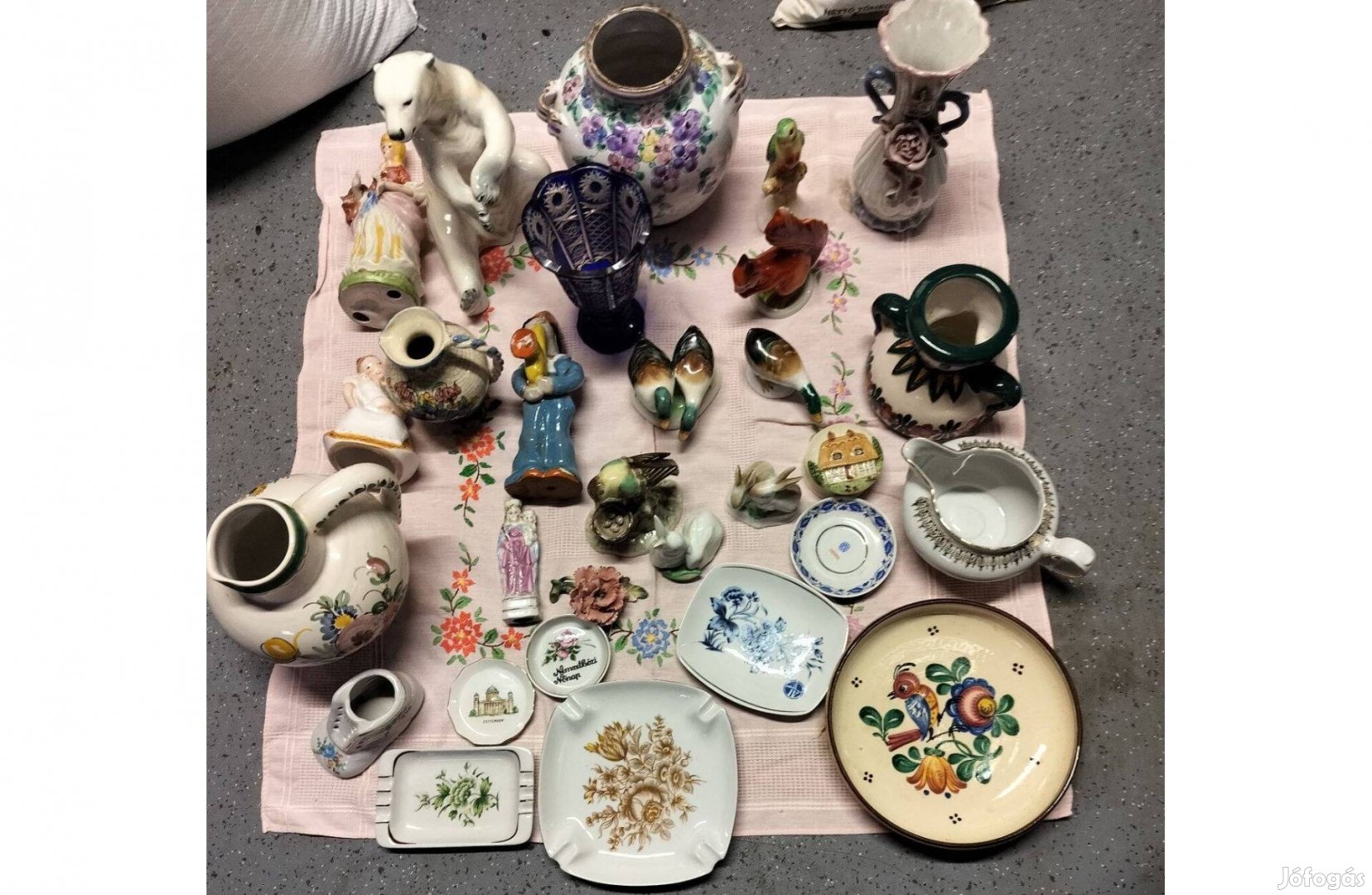 Eladók a képeken látható porcelán figurák, tányérok, kancsók.