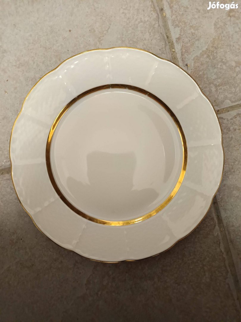 18 darabos tányér garnitúra. Csehszlovák porcelán. Két arany csikkal.