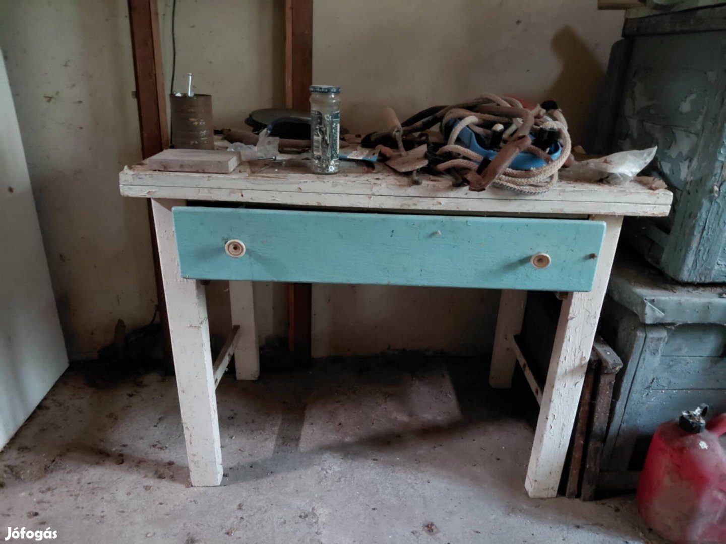 Eladó a képen látható Retró konyhaasztal fiókos asztal, amely alcsútdobozon található.Átvétel csak személyesen ,előre egyeztetett időpontban.