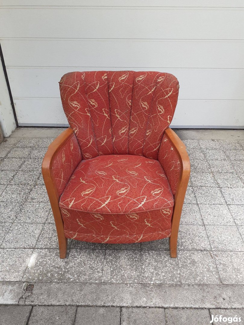70 éves, a koruknak megfelelő, archív, lepkés fotelek eladók. Az egyik ülőrésze felújításra szorul, ám kárpitozás restaurálás után kiválóan használhatók.
