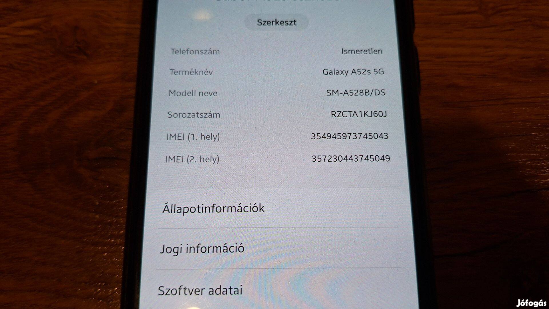 Samsung Galaxy A52s 5G 6/128 GB, kártyafüggetlen dual sim - "Awesome Mint" színű mobil eladó. (SM-A528B/DS)
