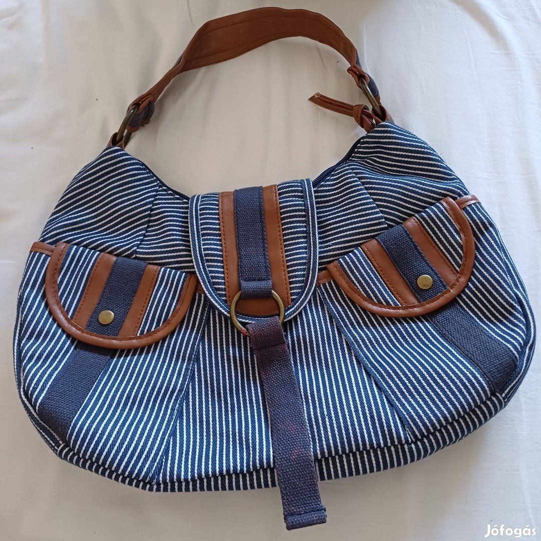 Sötétkék/fehér női vászon válltáska eladó