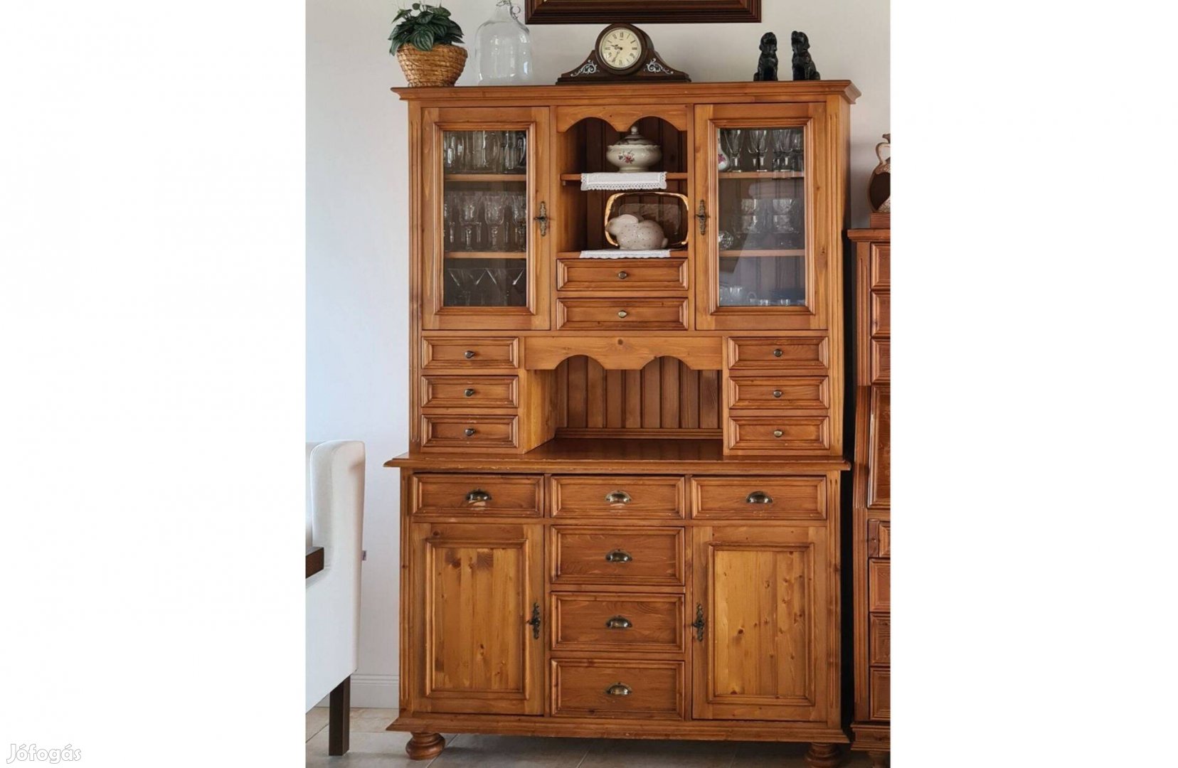 Igényes lakásból megkímélt állapotú fenyő tálaló szekrény elvihető. Használatból eredő kopásokkal, melyek mértékét a fotók mutatják. Összességében minden eleme-, fiókok, zárak-kulcsok, fogantyúk működnek, hibátlanok, nem kotyog, nem lötyög a bútor stabil. A felületet kell újra kezelni. De így is rögtön lakásba helyezhető.