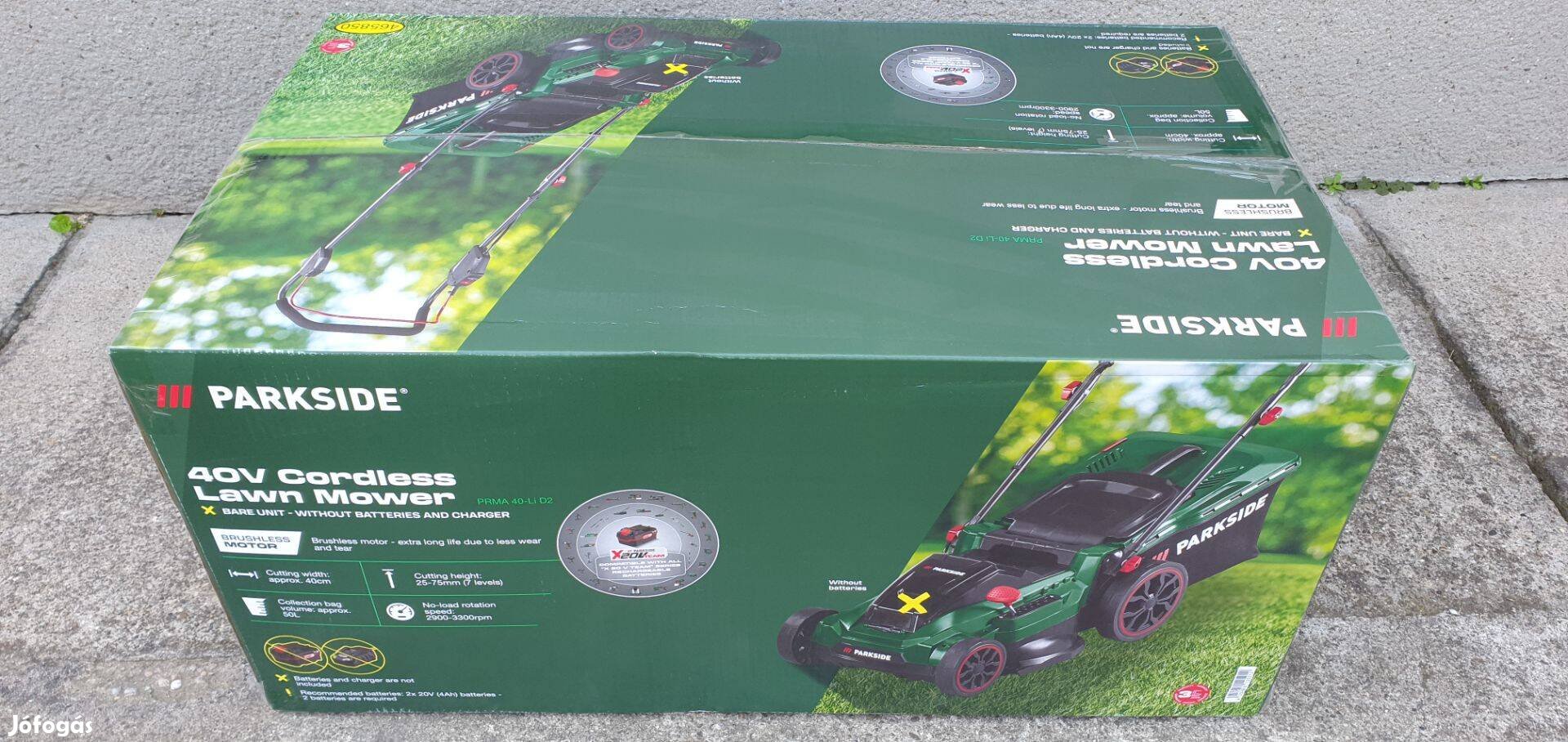 Eladó a fent említett új Parkside Prma 40-Li D2 akkumulátoros fűnyíró (2×20V), teljesen új állapotban, szénkefementes motor, adatok/leírás a képeken. Akku és töltő nélkül, blokk/garancia nincs.