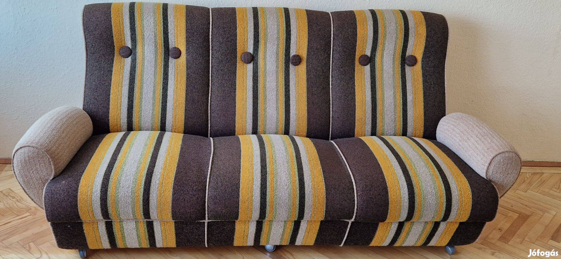 Eladó a képen látható, nem kinyitható, gurulós kanapé 2 db fotellel. A fotel karfáján van egy kis hiba, egyébként kifogástalan állapotban van, nincs kiülve és kényelmes. Szállításban nem tudok segíteni.