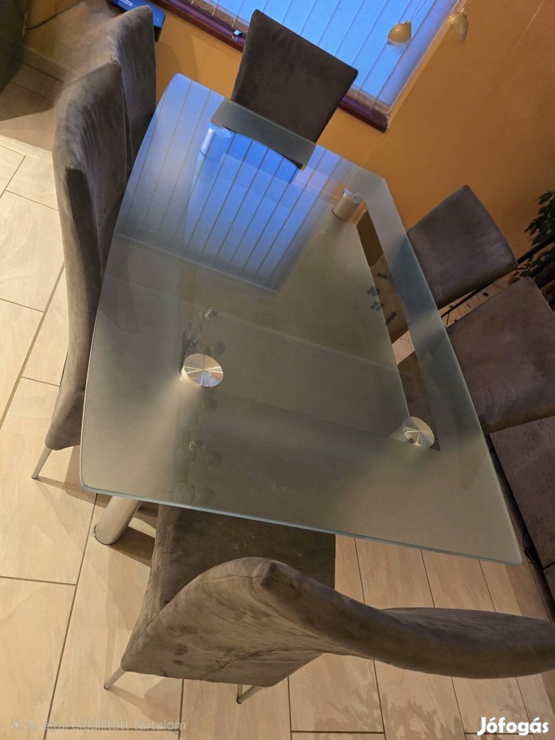 Eladó a képen látható üvegasztal és 6 db szék.Használt de megkímélt állapotban. Asztal mérete 160x95