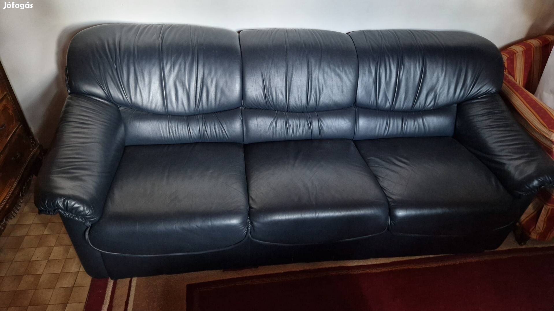 Valódi bőrkanapé szép állapotban eladó! Kék színű. Méretek: 195 cm hosszú, 80 cm magas, 85 cm mélység