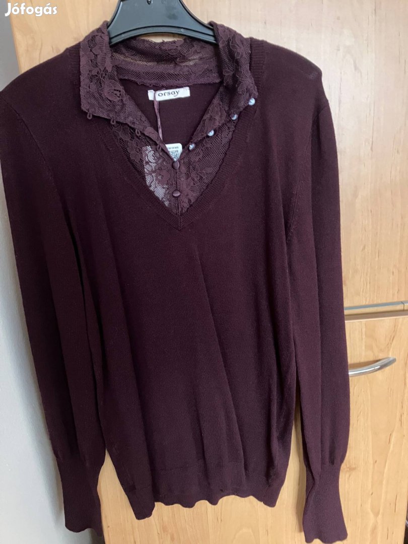 Sötétlila, elegáns csipkedísszel, pótgomb is van hozzá.