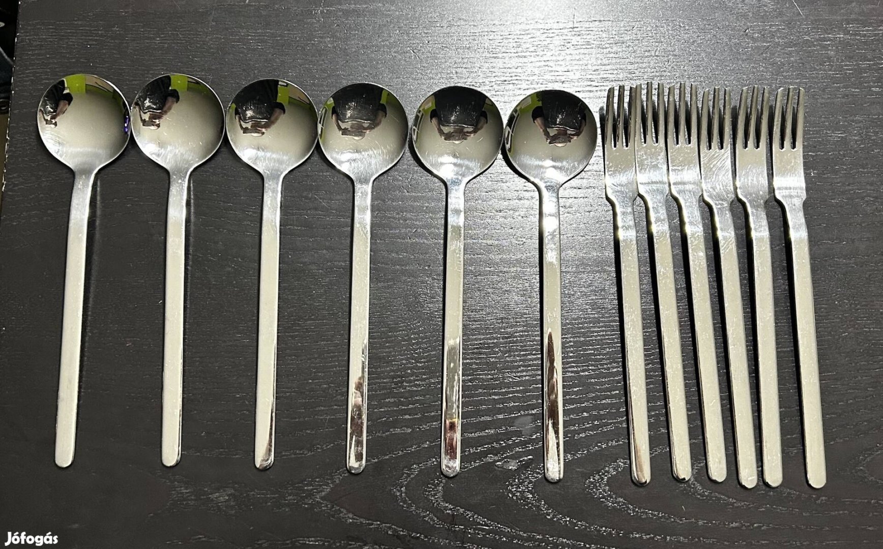 6 db kanálból, és 6 db villából áll. Természetesen a használatból eredően vannak rajtuk "halvány" karcok. Mosogatógépben mosható.