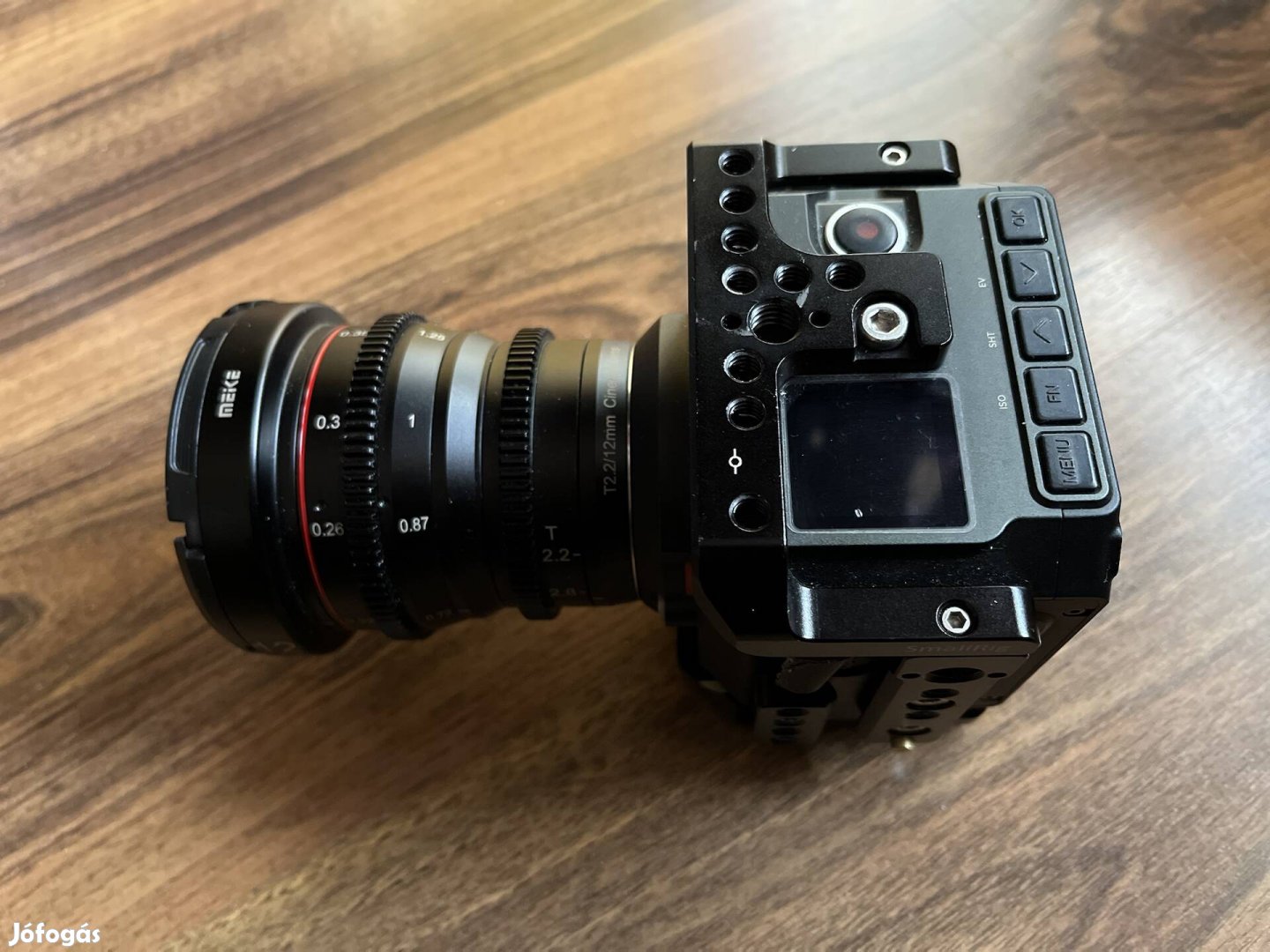 Z-cam E2 MFT bajonettel, smallrig cage a képen látható felállásban. Van még egy lemo tápkábel hozzá ami a fotón nem szerepel.