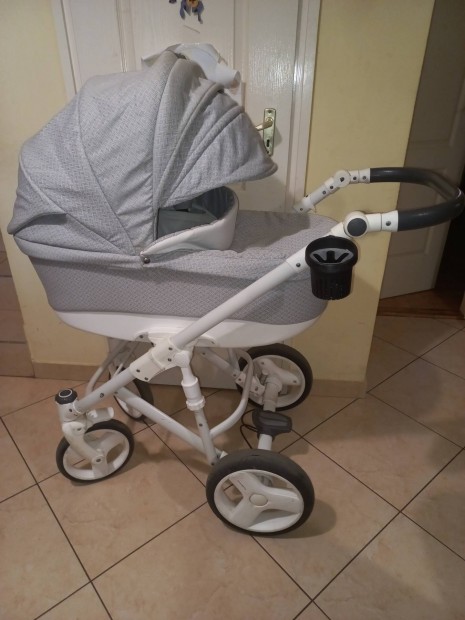 Babakocsi 3:1 szürke -fehér bőrbetétes