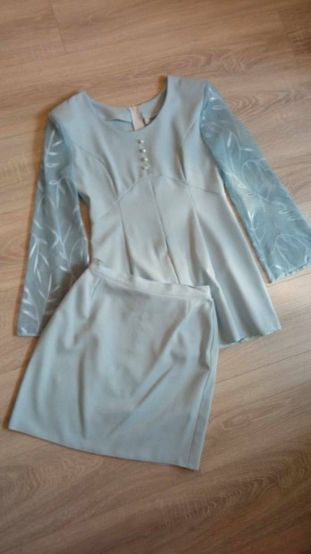 Kb 38as női kék mintás ujjú blúz és szoknya
