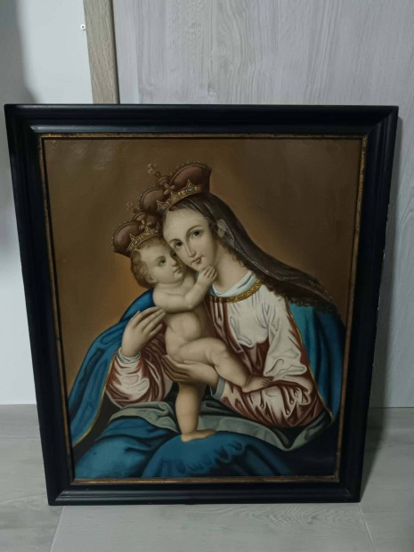 Szűz Mária és kis Jézus olajfestmény keretben (126 x 73 x 7,5 cm)