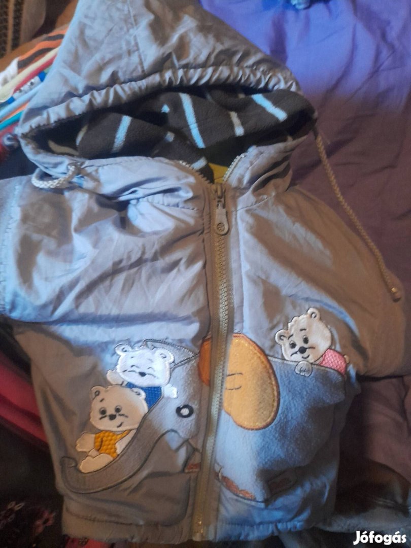 Szep allapotu szurke dzseki barna overall nadrag es egy barna narancssarga csikos pulover